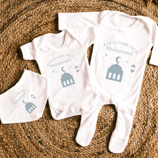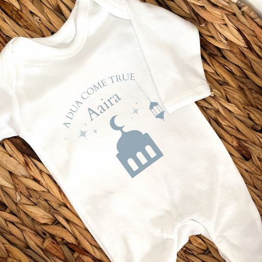 Personalised Muslim New Baby Boy Sleepsuit. A Dua Come True