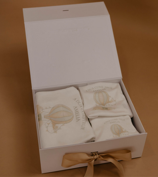 Personalised Muslim New Baby Gift Set - Neutral Hot Air Balloon