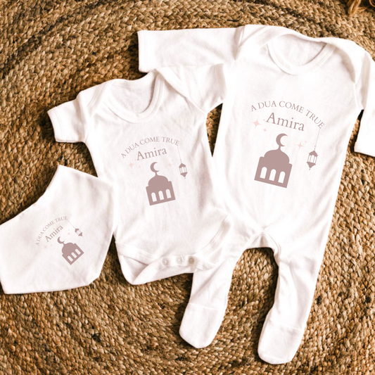 Personalised Muslim New Baby Girl Sleepsuit. A Dua Come True