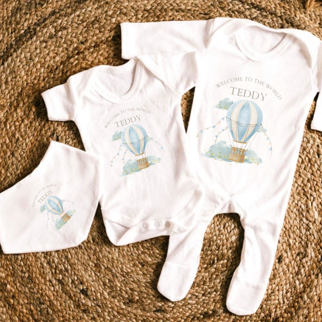 Personalised New Baby Boy Gift Set - Blue Hot Air Balloon